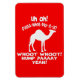 É o legal, clássico, adivinhem que dia é a imã de geladeira premium do Camelo Hump Day! Escolha este design popular em muitas cores de fundo e agarre o seu hoje mesmo! Ou tomá-lo como está, em vermelho.