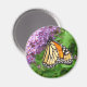 Uma borboleta Monarca jovem e inabalável gira néctar em flores de arbustos borboletas completamente abertas.
