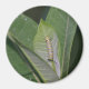 Uma lagarta monarca pende sobre a ordenheira.