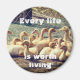 Íman redondo com patos para vegetarianos e veganos com texto Toda vida vale a pena viver, sem crueldade e direitos dos animais. Escolha a outra forma, se quiser. Namorados, roupa, canecas, cartões de saudação. presentes, acessórios e outros designs bonito ou engraçados. Todos os itens podem ser personalizados e ajustados às necessidades do cliente.