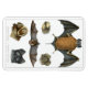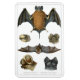 Uma impressão do século 19 detalhada, colorida à mão, mostrando ilustrações de quatro tipos diferentes de morcegos.