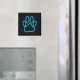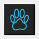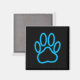 Imã de geladeira personalizada com uma impressão de pata de cão neon azul. Design de desenho animado.