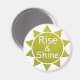 Estilo do desenho animado bonito sol com a mensagem: "Rise and Shine". Ímanes personalizados. Ideia para pessoas de todas as idades.