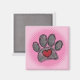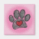 Impressão de pata de cão e aquarela cardíaca em vermelho, preto e cinza. Efeito de meio-tom aplicado à imagem. Versão em segundo plano rosa. Ímanes personalizados. Ideia de presente para amantes de cães.