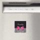 Um ímã de impressão leopardo preto e branco tenente com uma fita rosa-escura vivaz amarrada num arco giro e giro. Personalize este design de padrão chic e na moda, adicionando o nome da sua adolescente. Imagem impressa plana, não fita real.