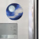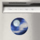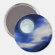 Impressão da Lua - design gráfica mestiça, montagem fotográfica digital melhorada da lua de cheio, rodeada por um halo fraco, contra um céu noturno azul profundo e nuvens iluminadas pela lua