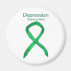 A fita verde é usada para mostrar a consciência da depressão. Personalize esta imã de geladeira de faixa de reconhecimento com uma mensagem pessoal de reconhecimento de depressão. Veja mais da nossa arte em AwarenessGallery.com.