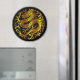 Esta trabalho de arte mostra uma gravura cativante de chamas respiratórias de dragões, enfeitada com intrincadas decorações de ouro. A poderosa imagem do dragão simboliza força, ferocidade e proeza mítica. Os embelezamentos do ouro acrescentam um elemento de opulência e elevam a presença do dragão. Mergulhe no mundo mesmerizante desta trabalho de arte e deixe o hálito do dragão inflamar sua imaginação.