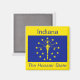 Uma imagem autêntica e de qualidade da bandeira de Indiana foi definida entre o nome do Estado e o apelido sobre um fundo de cor de bandeira.