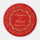 Este ímã bonito e decorativo coordena-se com o campo de casamentos e artigos de papelaria verdadeiramente único e inspirado na Índia. Um fundo vermelho profundo e real abriga um quadro floral de efeito ouro dentro do qual os nomes noivo e noivo e a data de casamento podem ser adicionados.