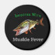Poucas coisas se comparam a pegar um poderoso pique dentado e muscular. Cor do cheio imagem detalhada de um muskie monstro com o texto Infectado com a Febre Muskie.