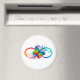 Multicor, brilho, símbolo de infinidade com arco-íris, monarca de borboleta detalhada. Borboleta-arco-íris. Arco-íris infinito.