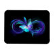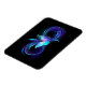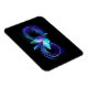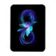Símbolo infinito com borboleta mágica, roxa e brilhante com asas transparentes, sobre fundo preto. Borboleta brilhante.