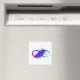 Símbolo infinito com uma bela pena pintada em cores roxas e azuis brilhantes sobre fundo branco.