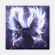 Um gato fada preto com asas roxas brilhantes. Innocence Fairy Cat por Michaeline McDonald. Direitos autorais do trabalho de arte © Michaeline McDonald.