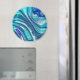 Adicione um toque da Nova Zelândia ao seu evento com este ímã na moda, que apresenta elegante e aleatório iridescente, azul ceruliano e espirros roxos inspirados por conchas pausa (haliote arco-íris).