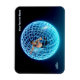 Uma imagem de ficção científica fractal em 3D de um homem solitário segurando os bares da jaula azul esférica em que está preso. Estrelas brilham no céu escuro. Adicione seu próprio texto.