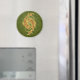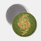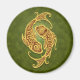 Esse símbolo estilizado para o sinal de zodíaco de Peixes é decorado com linhas e padrões de pontos complexos. O design simétrico apresenta dois peixes elaborados que ajustado juntos em um padrão yin yang. Este impressionante ímã amarelo e verde é uma bela e na moda para mostrar seu sinal astrológico.