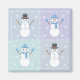 Quatro praças de blues pálidos e roxas são decoradas com bonecos de neve vestindo chapéus de cima e roupas de inverno, como tobogãs, cachecóis e mitenes. A costura branca adiciona um toque decorativo, dando ao padrão repetitivo a aparência de uma colcha, criando um sentimento perfeitamente aconchegante para o inverno.