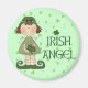 Este design bonito mostra uma garotinha vestida de verde e segurando um grande pântano com a legenda "Irish Angel" em um fundo de xamrochas.