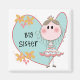 Uma pequena princesa de figura de palito em tiara sobre um grande fundo cardíaco azul com texto que diz "Irmã Grande" em T-shirts de irmã mais velha, ímanes, cartões, autocolantes, sacos de tote, correntes-chave, travesseiros, relógios de parede e muito mais!