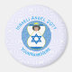 O ímã redondo apresenta um anjo que veste a bandeira de Israel e voa no centro de um círculo azul, digitalmente criado. As cores primárias neste design são azul e branco, escolhidas tendo em mente Hanukkah. As letras azuis leem ISRAELI ANGEL e fazem um espaço para o ano e um nome, permitindo que você crie um presente personalizado ou personalize sua aparência. O fundo é quadrado branco. Um brincalhão divertido, especialmente para famílias de múltiplas religiões.