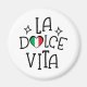 Italy magnet for your kitchen featuring a "La Dolce Vita" design and a cute Italian flag heart. This Italian fridge magnet is a wonderful way to display your travel memories or love for the sweet life. A high-quality Italy souvenir magnet that looks great on any magnetic surface. The perfect Italy lover gift or as a small memento from your trip to Rome or Venice.