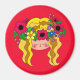 Um brilhante ímã alegre de uma garota vestindo uma manchete floral como as vestidas nas festividades de Ivana Kupala. A papoila está representada no fone ou na coroa e também é representada pelo fundo vermelho. Veja minha linha completa de ímãs e decore seu frigorífico com cor.