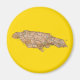 O design neste ímã apresenta um mapa da Jamaica com um fundo de cor de bandeira. Adicione um pouco de sabor jamaicano à sua casa.