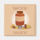 Magnet com um design ilustrado de um boião sorridente de manteiga de amendoim que se encontra entre duas pilhas de amendoins. As palavras "Manteiga de amendoim"? Peanut Melhor!" mostra acima e abaixo do personagem de desenho animado. Todas as palavras podem ser personalizadas.