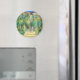 Magnet, com a pintura a óleo de Claude Monet O Jardim do Artista em Vétheuil (1880). Os girassóis e outras lindas flores azuis e vermelhas fazem um percurso no jardim onde as crianças estão dando um passeio agradável. Um presente de excelente para fãs do impressionismo e da arte francesa.