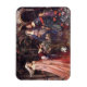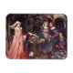 O renascimento inspirou a pintura de pessoas no jardim com fonte. Centro de peças numa donzela num manto. Vintage belas artes por John William Waterhouse. Dominio público.