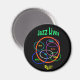 Para aqueles que amam jazz, este imã é uma celebração do melhor dos bebop e das eras do posto. Círculos coloridos de vermelho, azul, roxo, branco e turquesa encerram alguns dos músicos do excelente. Todos são ativados por textos amarelos e verdes sobre fundo preto puro.