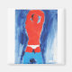 Uma pintura abstrato de um homem com braços dobrados acima da cabeça. Jeans azuis são coxas de médio com sumários brancos mostrando.