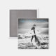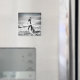 Imã de geladeira com uma foto escura e branca de um surfista atravessando o recife para ir e surf os incríveis tubos na Baía de Jeffrey, na África do Sul.