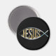 As palavras Jesus em ouro dentro de um símbolo de peixe. frontiernow.com