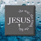O ímã cristão retrata um moderno design preto e branco minimalista com a poderosa citação cristã inspiradora de John 14:6 "Jesus diz a ele, eu sou o caminho, a verdade, e a vida: nenhum homem chega ao Pai, mas por mim."