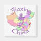 A Jiaxing da província de Zhejiang num mapa colorido da China inclui os símbolos chineses para a 'Jiaxing' e a sua localização está marcada no mapa com um coração e uma bandeira. Um presente único e divertido! Projetada por Hendrika em RedThreadMaps.com