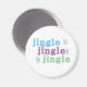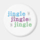 Um design único e simples em cartões de cartões de natal, mousepads, sacos de tota de férias, T-shirts, e mais com texto azul, verde e lavanda e flocos de neve que diz "Jingle Jingle Jingle"!