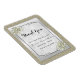 Lindo, sofisticado e elegante ímã de agradecimento de lembrança de casamento com um fundo brilhante dourado, uma moldura prateada elegante em uma borda prateada com lindas decorações de flores decoradas com pérolas nos cantos, tudo sobre um fundo de damasco branco cheio de espirais e floreios. Um design romântico, elegante e sofisticado para o seu dia especial. Todo o texto é totalmente personalizável para atender às suas necessidades, se você precisar de ajuda para personalizar seu produto ou quiser produtos combinando, por favor entre em contato comigo através da minha loja e ficarei muito feliz em ajudá-lo.
