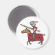 Um cavaleiro medieval a montar num torneio de júbilo. Veste o capacete com fitas, blindagens e carregares uma lança. O cavalo veste um casaco. Uma imagem divertida do estilo de desenho animado para os modernos jousters e fãs alegres.