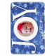 Uma bela imagem de flocos de neve no fundo com o texto "Joy". Você pode inserir sua própria fotografia de um dentro amado o "O". Perfeito para dar como presente ou pegar um para você.
