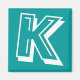 K ímã. A cor de fundo e o texto podem ser personalizados.