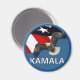 Texto KAMALA sob uma águia careca voando alto e a Bandeira Americana.