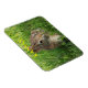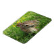 Uma imagem de um Coelho Coelho na grama verde em Hutchinson Kansas USA que é brilhante e colorida. Isso é em um Magnet Quadrado.