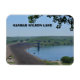 Uma fotografia da Barragem Wilson Lake com água azul e céu, e grama verde e árvore. Isso é em um Magnet Quadrado.