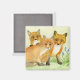 Três kits de raposa inquisitivos são apresentados nesta pequena pintura aquosa.