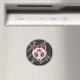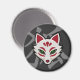 Uma máscara de raposa branca e vermelha sobre o personagem kanji para "kitsune". Coloque na geladeira!