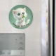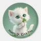 Uma foto adorável de um gatinho branco segurando uma pedra de xamelo, é mostrada neste ímã redondo para a Rua. Dia de Patrick. Com a mensagem "Feliz Rua. Dia de Pat", faz deste ímã uma decoração de excelente ou dá como presente para o feriado irlandês!