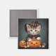 Imã Kitten no Halloween Costume e Jack-O-Lanterna